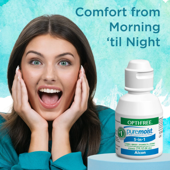 OPTI-FREE Pure moist is your multi-purpose contact lens solution from morning until night and everything in between. No matter what your day brings, OPTI-FREE® Pure moist® gives you all-day comfort. Here's why OPTI-FREE Pure moist is where it's at: Ever wonder why a multi-purpose contact lens solution is different than saline The fact is, saline solutions were never meant to clean or disinfect your contact lenses. All they really do is rinse your contact lenses. OPTI-FREE® Multi-purpose Solutions rinse, clean, disinfect, store and recondition your lenses. Our multipurpose disinfecting solution is more than your average saline solution, so there are a few extra steps to follow to ensure your lenses are truly clean, clear and comfortable. Remember to always wash, rinse and dry your hands before handling contact lenses. Sometimes lenses get dry and uncomfortable. But don't worry, OPTI-FREE® Pure moist® Rewetting Drops give you a refreshing burst of moisture that's designed to work with OPTI-FREE® Pure moist® Contact Lens Solution for added comfort. OPTI-FREE full line of eye care products including multipurpose contact lens solutions, rewetting drops and more are available online or in-store at Walmart.
